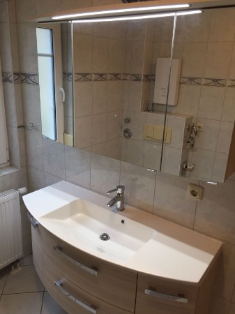 • Waschbecken mit beleuchtetem Spiegelschrank